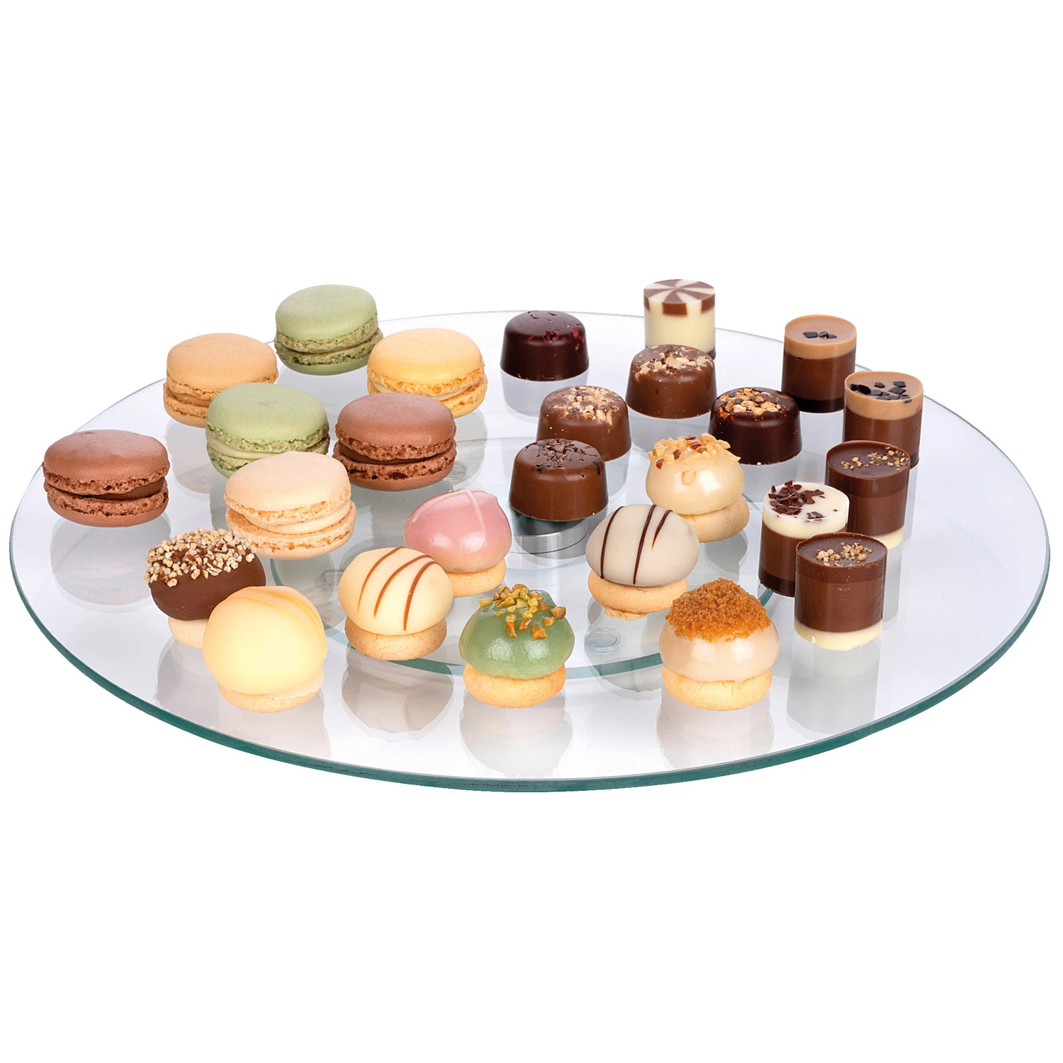 Serveer al je taartjes, gebakjes, snacks of andere lekkernijen op deze roterende serveerschaal van Alpina! Deze glazen schaal heeft een diameter van 32 cm en kan 360 graden draaien. Dankzij de anti-slip voetjes blijft de serveerplaat altijd op zijn plek.