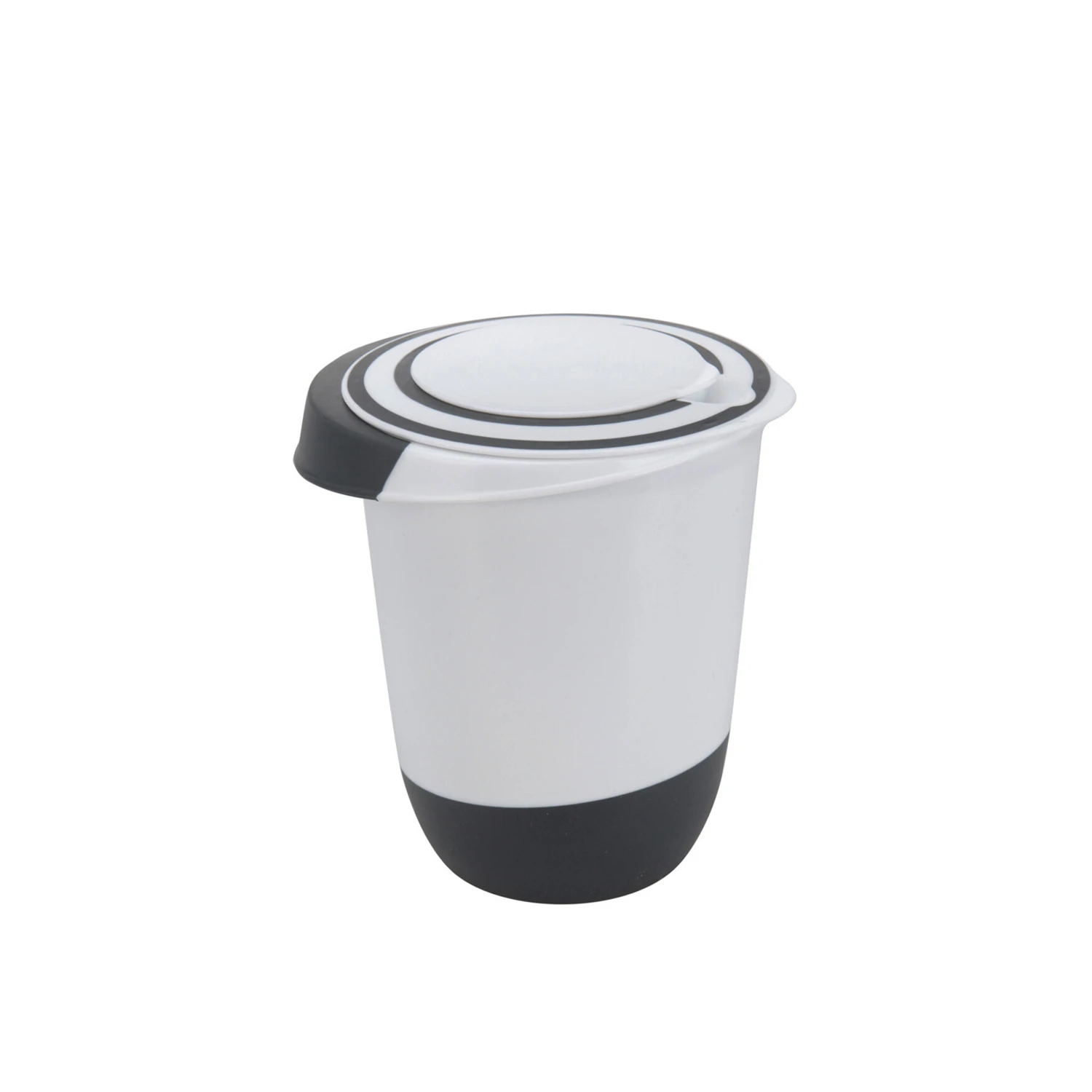 Deze handige roerkom heeft een luchtdicht deksel en een antislip bodem. De kom is ideaal als je slagroom moet kloppen of andere dingen door elkaar moet roeren. Zodra je uit bent geroerd of geklopt kan het in de kom bewaard worden dankzij de luchtdichte deksel. Een ander handig detail is dat je tijdens het opkloppen van slagroom het midden van de deksel kunt verwijderen, zodat het niet over de rand spat.